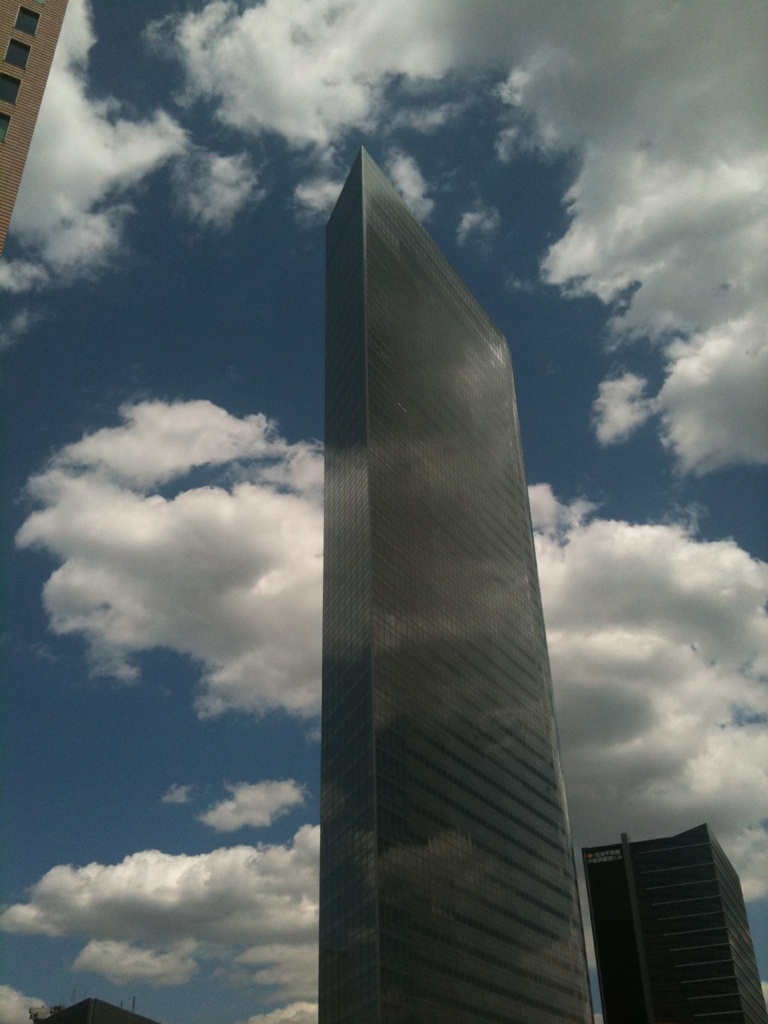 こうして見上げてみると、電通ビルって天高く伸びる要塞みたいだね・・・圧巻!!