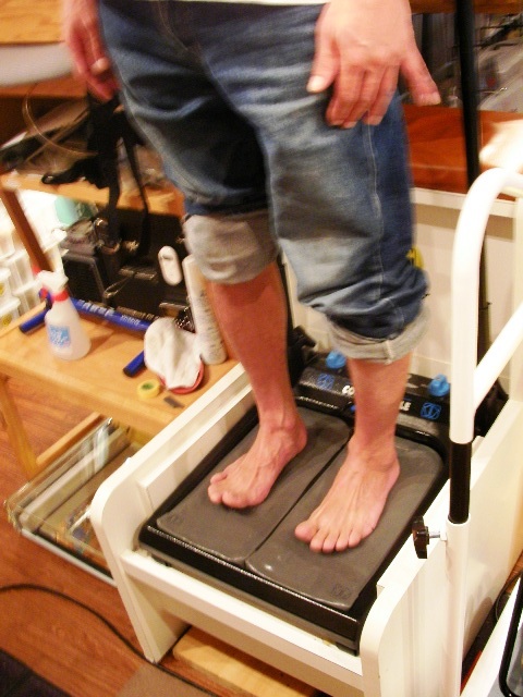 まず、なんていう機械なのか分からないが、足裏のどの位置に力が掛かっているかを調べるのもにあがりチェック!!