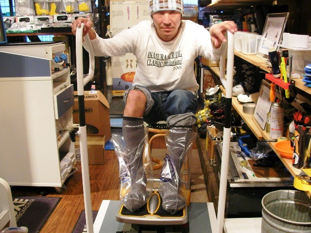 そうすると、つま先部のパイプまで液体が循環させブーツにインナーを入れます。