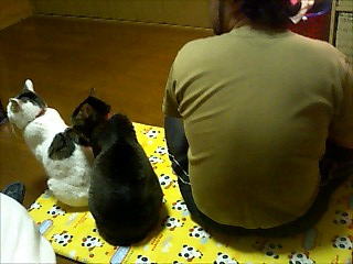 題して、旦那・山五郎の背中と二匹の猫達・・・・