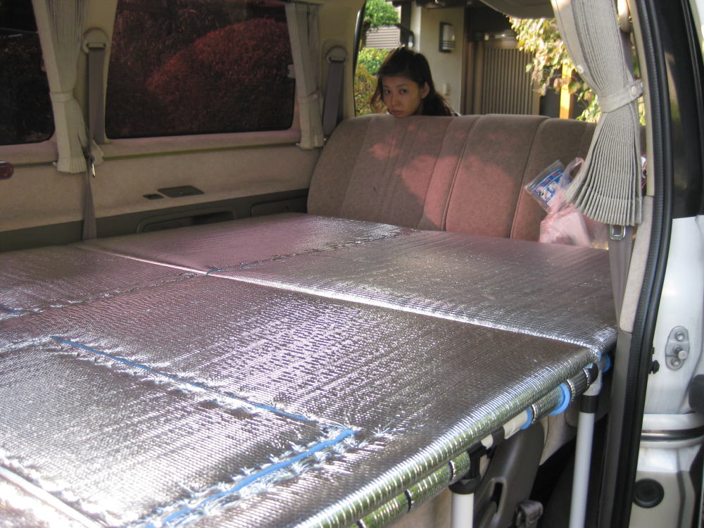 とりあえず、車内ベットメイキング初日の作業工程は無事完了!!