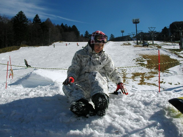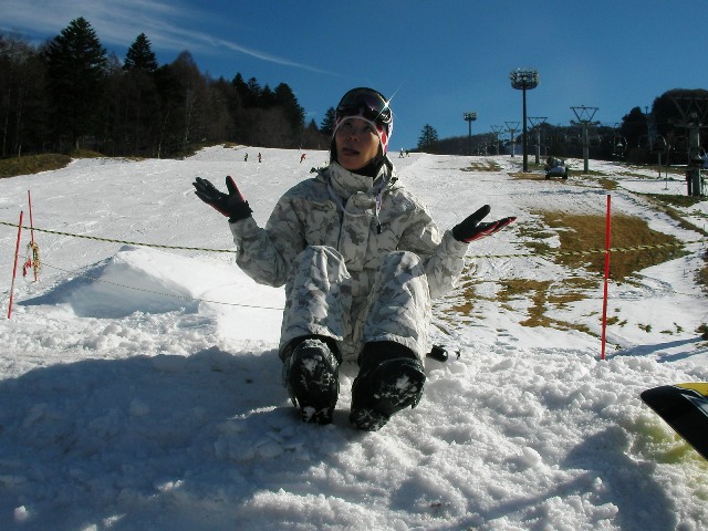 ガラガラに空いたイエローゲレンデで縦横無尽にカービングしたかった愛ちゃん・・・・