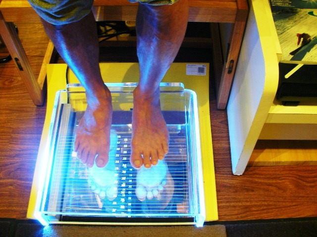まず、なんていう機械なのか分からないが、足裏のどの位置に力が掛かっているかを調べるのもにあがりチェック!!