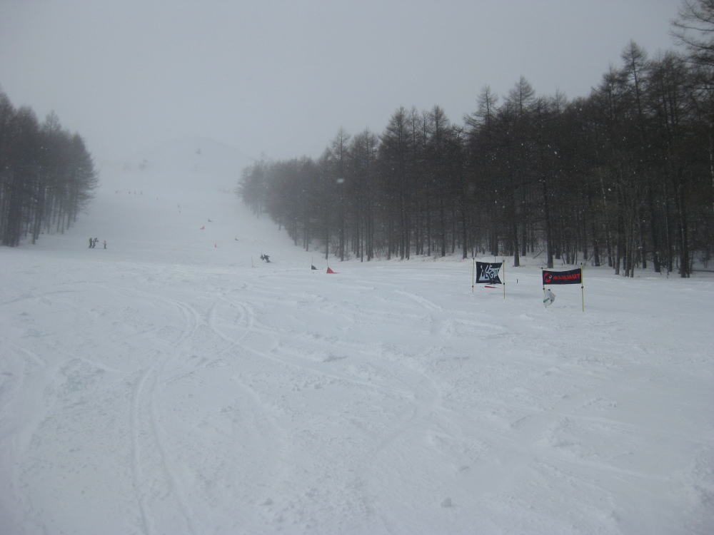 そして我輩がとったレース展開とは、まず急斜面から斜度変化まで動きを持った滑りに徹し、後の緩斜面のイケイケセットは、板を下へ下へ走らせるようイメージしました