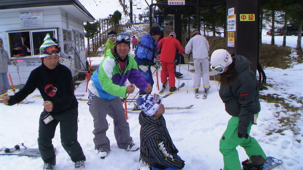 そして、ゲレンデの方もアイスバーン状態なので、あちらこちらで滑落状態になって滑り降りてくるボーダーの若い女の子達~~
