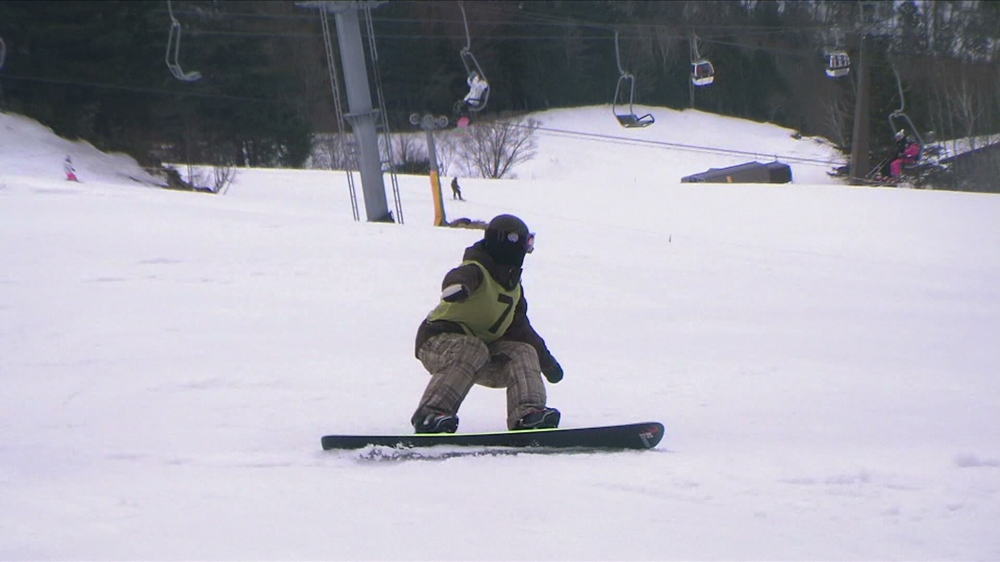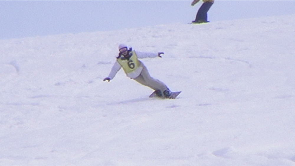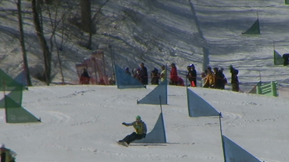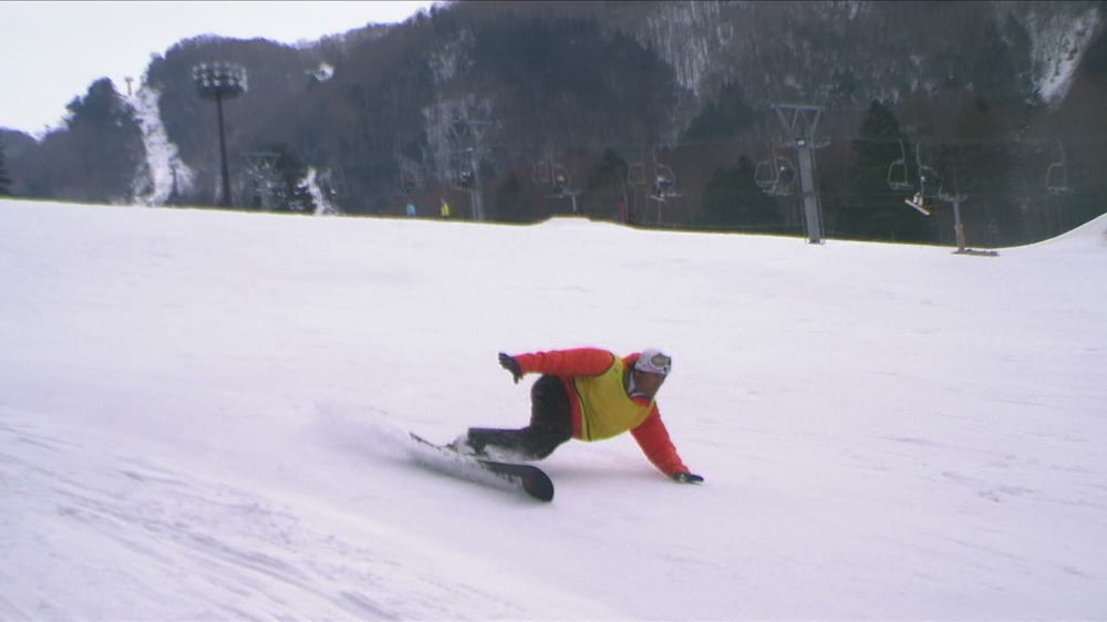 スタートの急斜面からバナナ以降の斜度変化まで快調に滑り降り、緩斜面手前でフロントエッジが抜け転倒~~