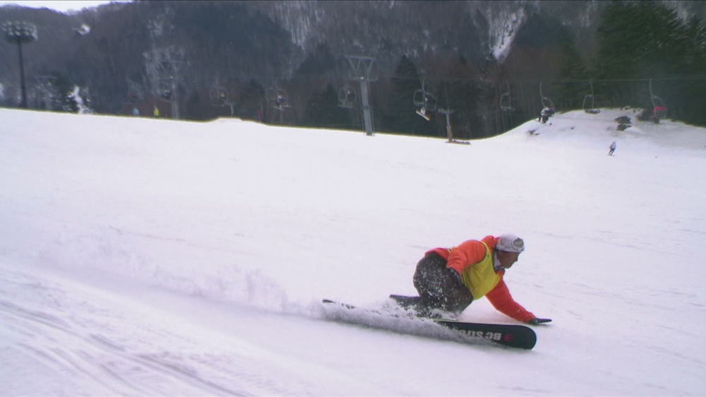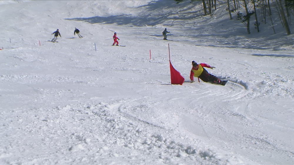 いつも一般男子で出場しているせいか、荒れてないバーンには戸惑いを感じるようだ・・・(笑)