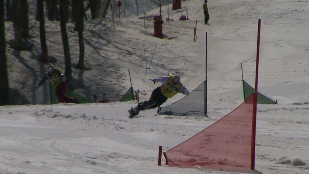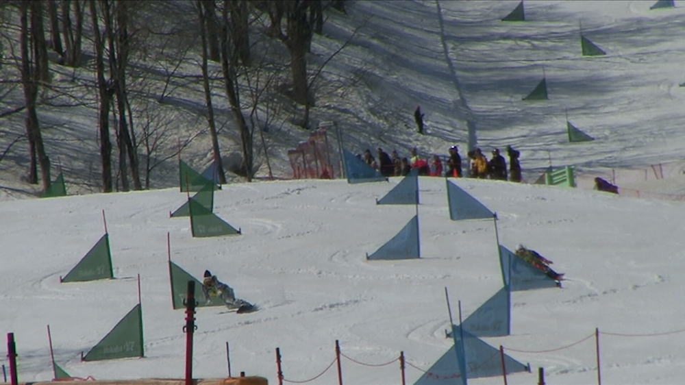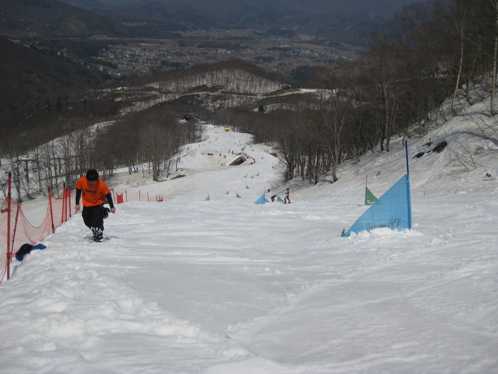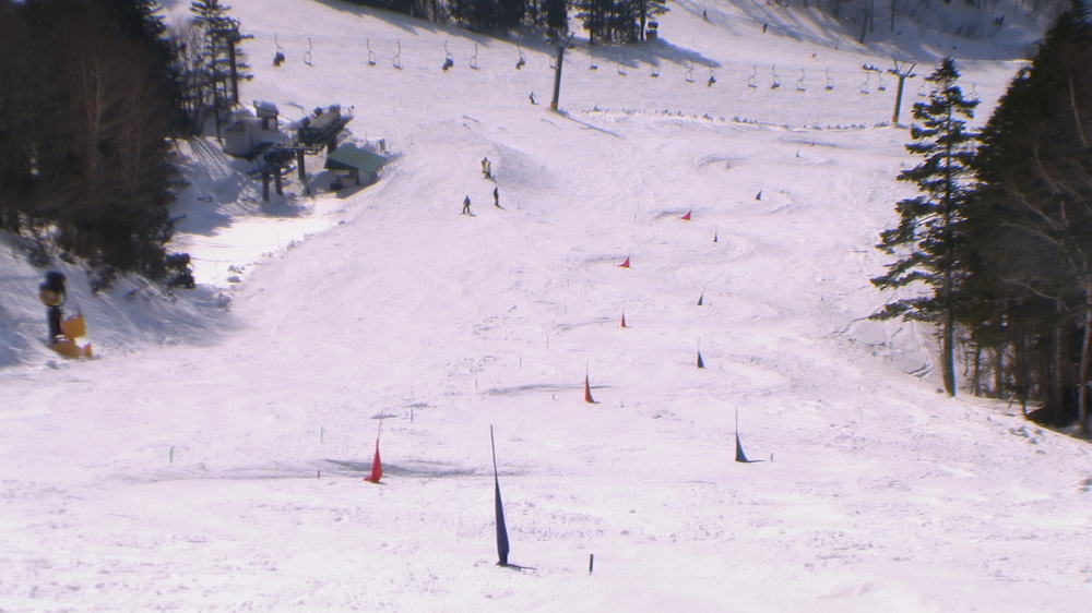 そう、今季は雪不足の為、いつも行われているコースは使用出来ず上部ゲレンデR2から大きく右に廻り込みR5へ落ちていくコースで、ゴール地点はR5とR6が合流する手前に設営された