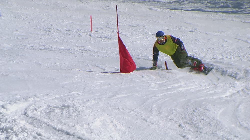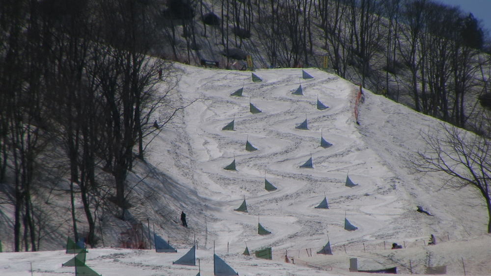 午後からはGSセットのゲート練習なので、とりあえずGSボードを履きイエローコースでアップ