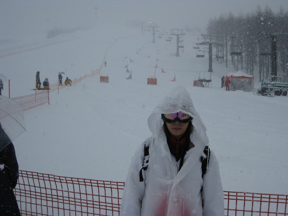 豪雨に近い状態でゲレンデは一部水溜りが出来初めて来ている