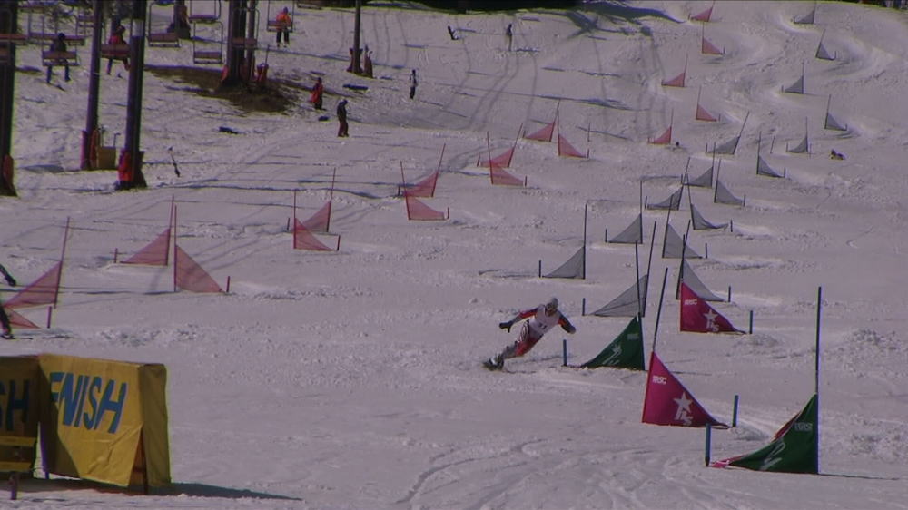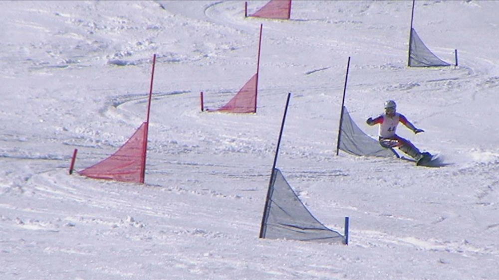 幸いにして1~3旗門は失敗なく滑りきり、4旗門目以降、一気に加速させライン重視の滑りでインフィールドを滑り終える