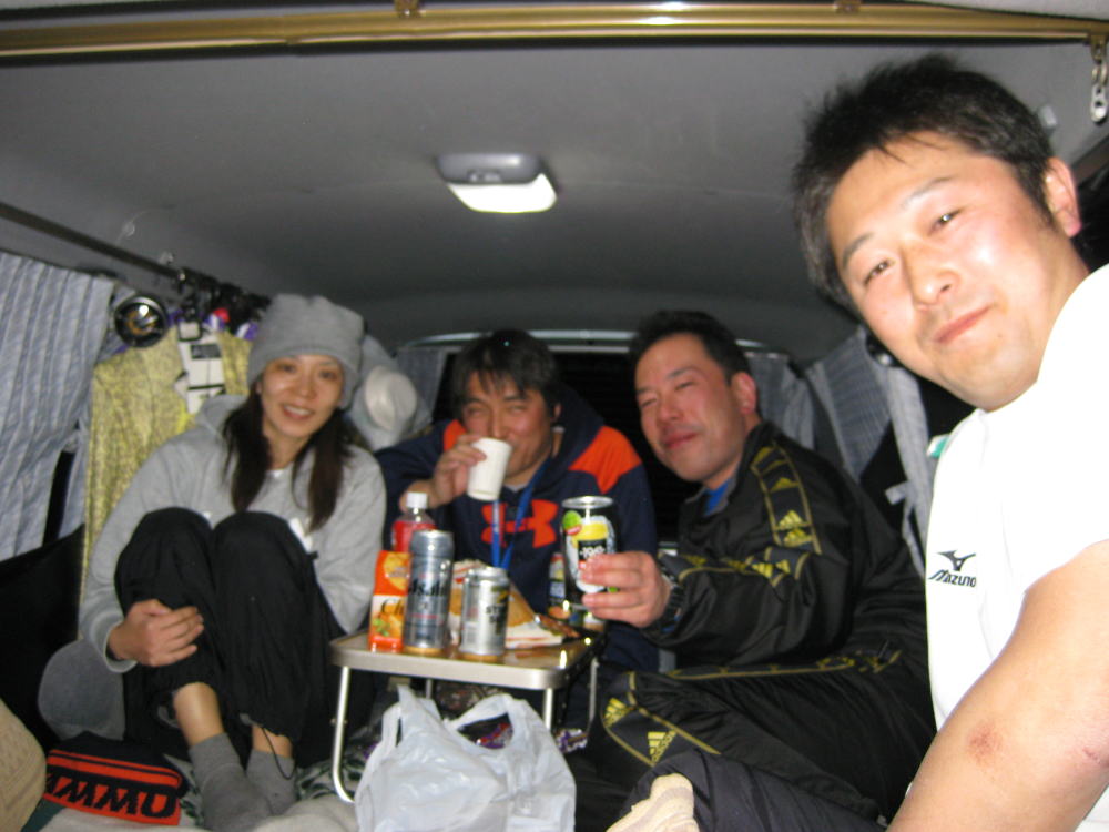 志賀高原ジャイアントスキー場、駐車場で2次会がスタート