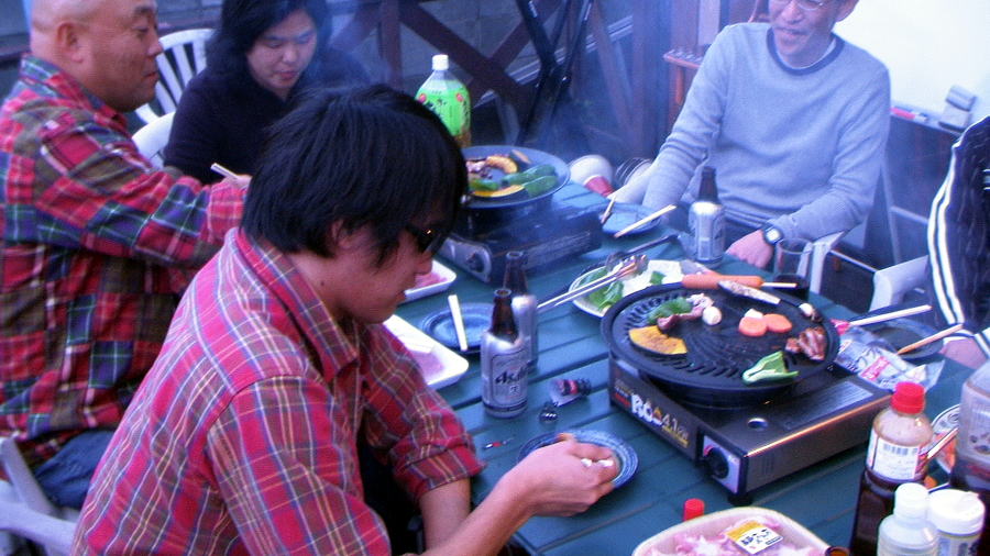 さてさて、BBQの進展具合だが、TAOの彼女、そしてクルクルパーマを掛けたTAOの頭を話題にハイテンション!!