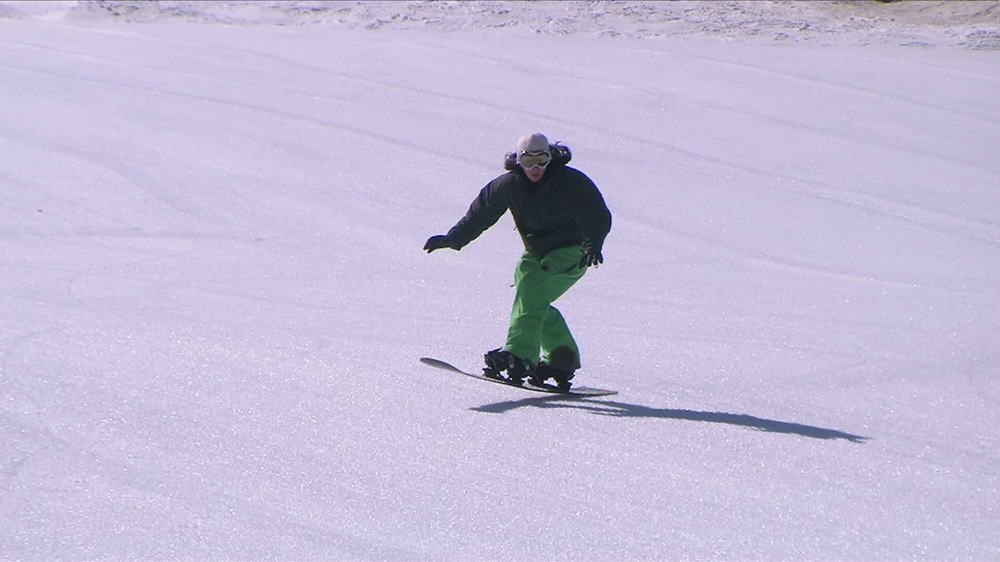 それでも挫けずアイスバーンでチャレンジし続け、ようやくいい感じでボードの動きと体が同調し始めてからはカチカチのアイスバーンでも強いエッジングでカービング出来るではないか!!