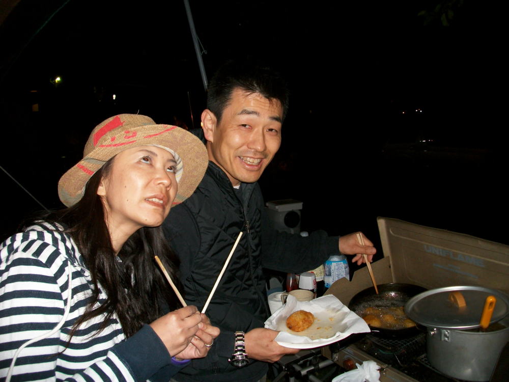 とりあえず、キャンプ初日の昼間には前の晩、愛ちゃんが仕込んでくれた焼き鳥、イカネギ詰め焼き・コロッケ