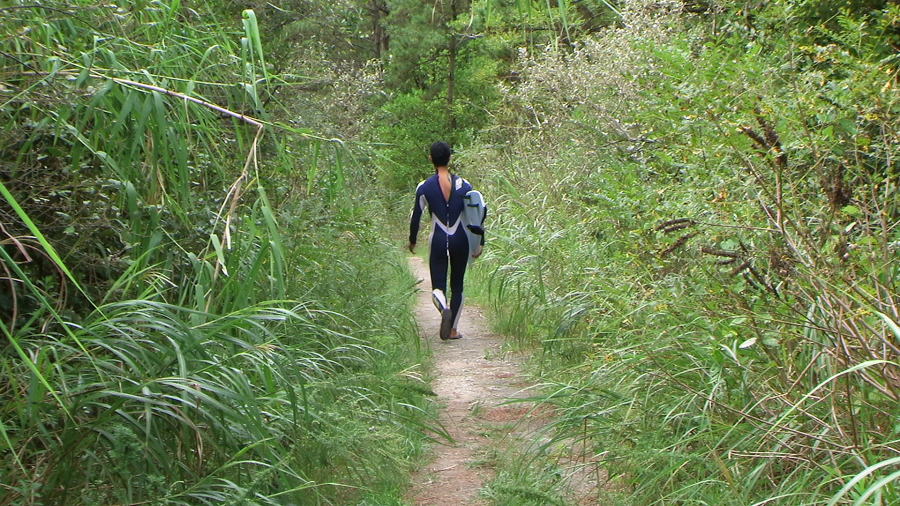 でも、長年の防風林構築によって駐車場からビーチまでの道のりはジャングルをすりぬけるようだ・・・・